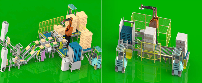 靈活應(yīng)變現(xiàn)場的各種碼垛要求,可根據(jù)用戶的要求進(jìn)行非標(biāo)準(zhǔn)碼垛形式設(shè)計。