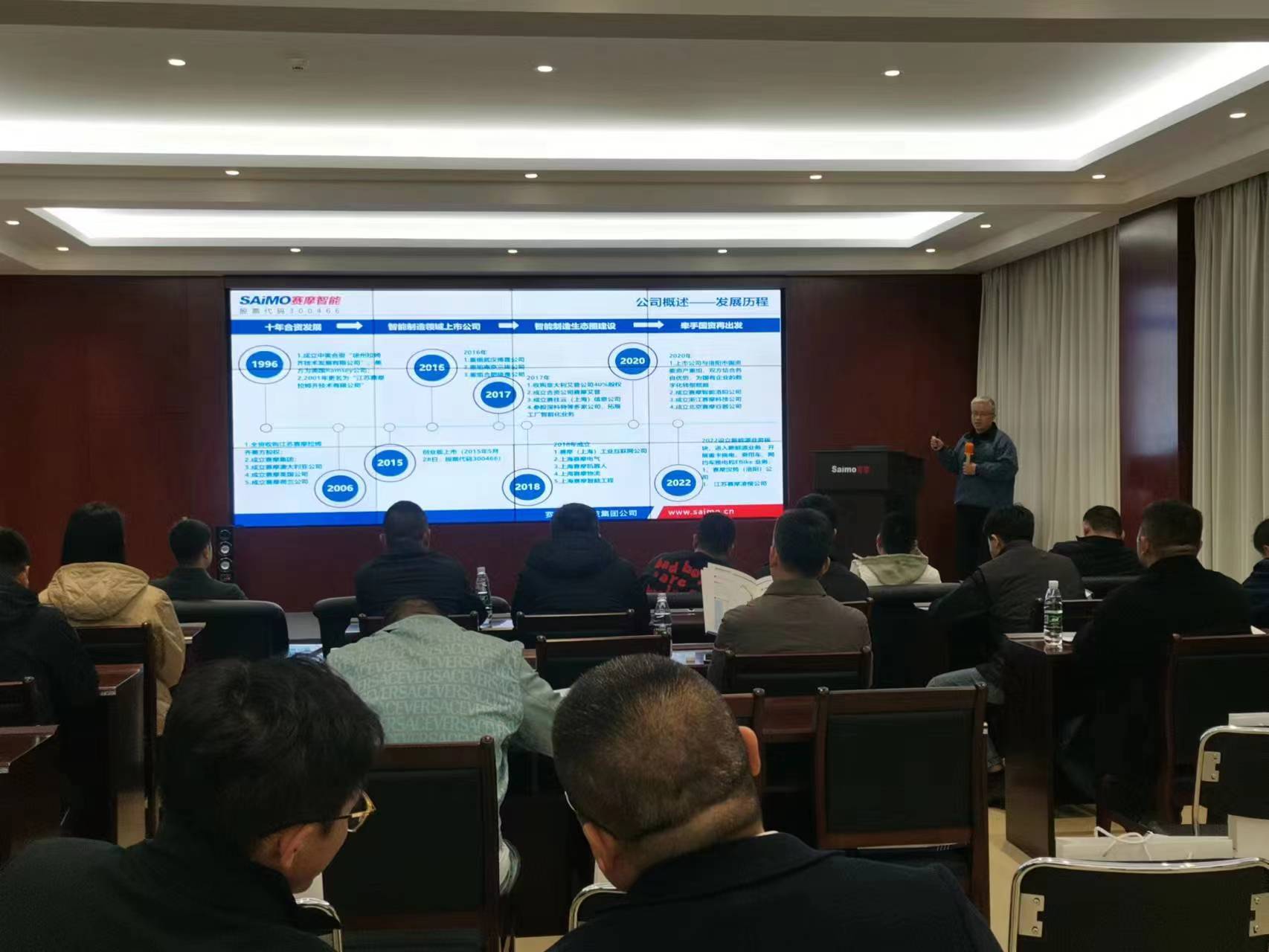 近日,由59名年輕一代民營企業(yè)家代表組成的“晉江經(jīng)驗(yàn)”研修班學(xué)員,在徐州市統(tǒng)戰(zhàn)部和市工商聯(lián)的組織下,來到賽摩集團(tuán)實(shí)地考察學(xué)習(xí)。集團(tuán)副總經(jīng)理吳洪軍先生帶領(lǐng)學(xué)員們參觀了企業(yè)的智能化生產(chǎn)車間、智慧物流創(chuàng)新中心,并在會(huì)議室給學(xué)員們上了一堂生動(dòng)的民營企業(yè)智改數(shù)轉(zhuǎn)探索與實(shí)踐之路的主題培訓(xùn)。